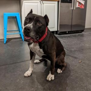 1 year old Staffordshire Pit for adoption. Private fenced in backyard perfect for pets are from joying a gorgeous outdoor day. Black Capped and Cinnamon Pinapple.